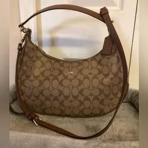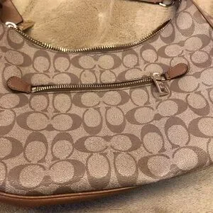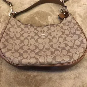 Coach Hobo Bag Coated Canvas Signature C Leather Tan Brown