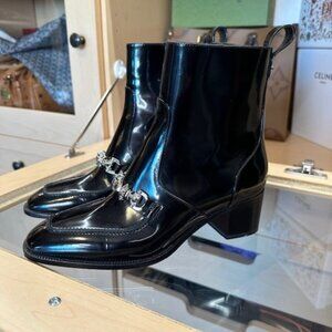 Christian Louboutin Black Chain-Link Accent Size 38 Patent Leather Booties