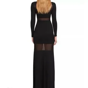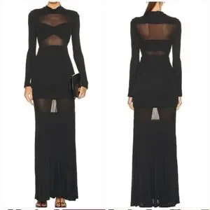 STAUD Black Cut-Out Semi Sheer Long Sleeve Paneled Maxi Dress