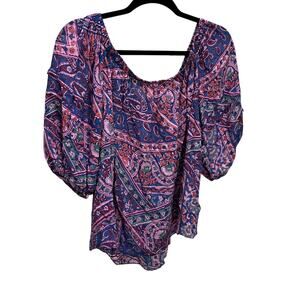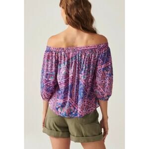 BA&SH Fenji Paisley Off The Shoulder Top in Blue