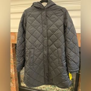 Weatherproof Hooded Diamond Quilted Black Coat, Sizes S and XL