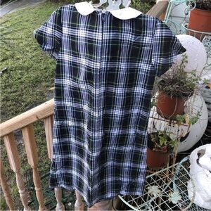 Lands End Kids Girls SS Dress Sz 7 Blue Green Plaid White Peter Pan Collar