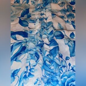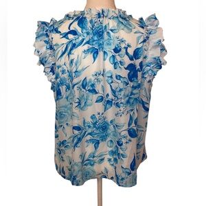 Cupcakes and Cashmere Brand Ladies Floral & Ruffled Blouse in Blue & White SZ LG