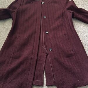 Talbots Long Duster Jacket Coat Crepe Textured Wool Blend Cranberry Size 16