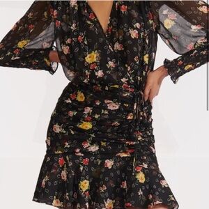 Veronica Beard Black Armeria Floral Print Long Sleeve Silk Dress Size 6