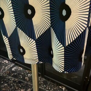 Stylish women's top featuring a striking geometric pattern in blue and white. Perfect for casual outings or a day at the office.ptp is 25 , length is 29