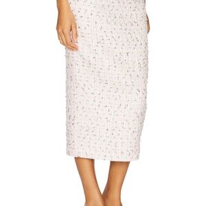 Self Portrait 2025 S/S Boucle Pearl Elegant Pink Tweed Midi Skirt US2/UK6
