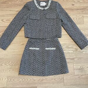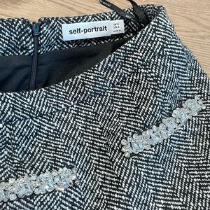 Self Portrait Herringbone Patterned Mini Skirt Black US2/UK6