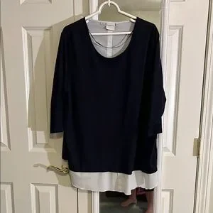 Elegant women's top featuring a navy and white design. Perfect for any occasion. Says XL FITS MORE LIKE 2x