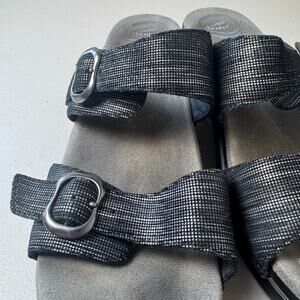 Dansko Sophie Black Metallic Slide Womens EU 42 Leather Double Strap Sandals