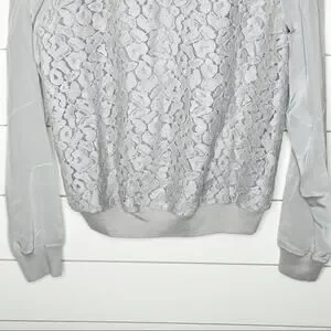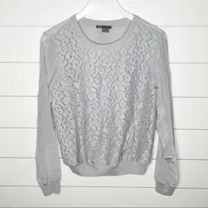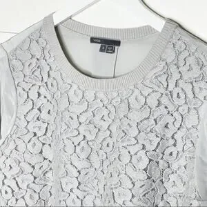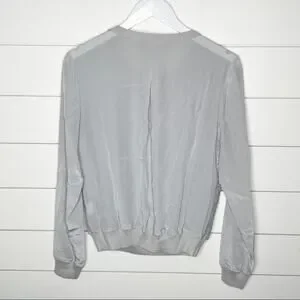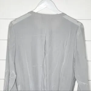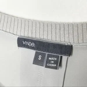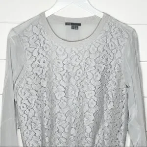 Vince Embroidered Leopard Silk Sweater Nickel Grey Size Small