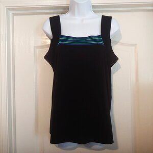 Exclusively Misook Womens Med Black Blue Tone Stripes Stretch Acrylic Shell Tank
