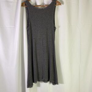 Olivia Rae tank dress, dark grey and white and white stripe, light weight, flowy, sleeveless, A line. Size L. 35 inch length. TT