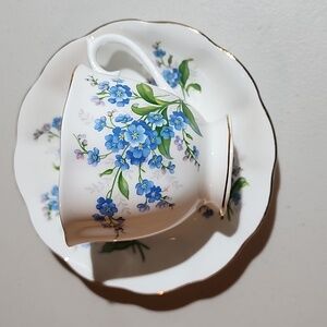 Elegant teacup & saucer with Forget-Me-Not Floral design.