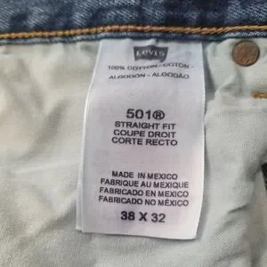 Vintage Levis 501 Denim Jeans Button Fly 38x32 Made In Mexico Good pre-owned condition. One small run....see photo! See photos for measurements and material content. Please feel free to ask questions. Upgrade your wardrobe with these classic blue denim jeans. Perfect for any casual occasion, these jeans offer both style and comfort.