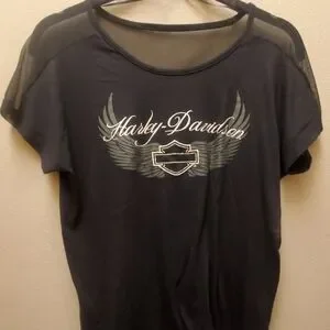 Ladies / Womens size M cap sleeve black Harley-Davidson top sheer on top back