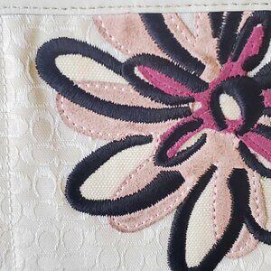 Flower appliqués (with suede leather and embroidery) on front and back.