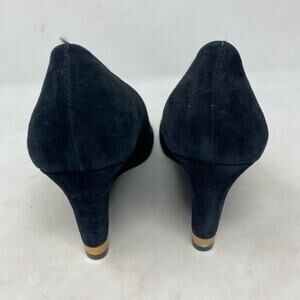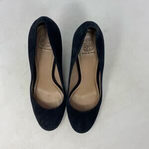 Tory Burch Black Suede Wedges With Gold Logo Heel Womens Size 8
