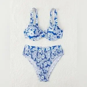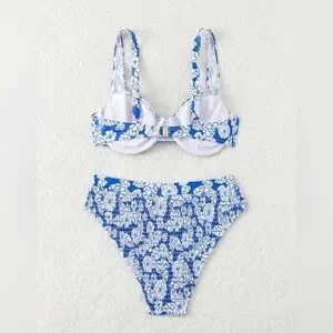 Brand New Floral Blue and White Bikini Set. Stylish bikini set with a floral pattern. Features a vibrant blue and white design.