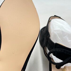 Wo Wagas Black Peep Toe Low Chunky Heel Slingback Elastic Strap Slip On Sandals