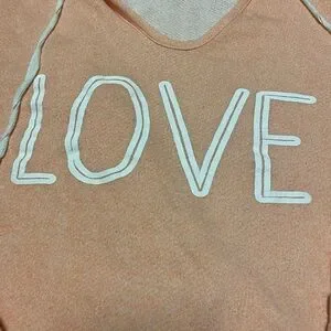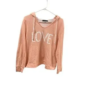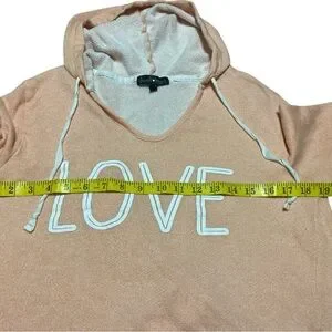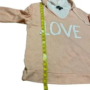 Derek Heart Peach Hoodie with 'LOVE' Graphic Women’s Size L Long Sleeve Top