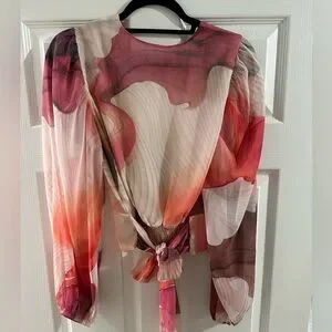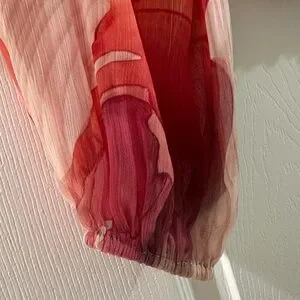 Elevate your style with this chic sheer sleeve crop top from Express. Featuring a stunning blend of red, pink, and cream hues, this top is perfect for any occasion. The elegant design and vibrant colors make it a must-have addition to your summer wardrobe.