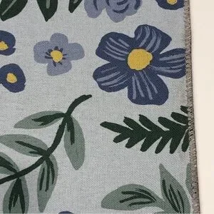 NWT Rifle Paper Co. Atelier Floral Non-Slip Runner Rug. Add a dose of colorful florals to any corner with a rug from our Atelier collection, created with a skid-resistant backer, perfect for in front of the sink or in an entryway. Vivid colors are achieved through printing the design on a powerloomed base. Part of our Rifle Paper Co. × Loloi collection. 2'3" x 3'9", 100% polyester, printed power-loomed, skid-resistant backing, 0.19" thickness, bright colors, fine details and durability are achieved in this rug, which is made of power-loomed polyester and finished with a printed design. Light blue with blue and white flower print throughout. This would be perfect in a little girl's room, nursery, playroom, bathroom, hallway, laundry room, closet, entryway, or anywhere else you can think of! Will be rolled when shipped. A small, untreated dust stain in the one corner (see last pic for up close).