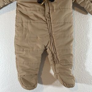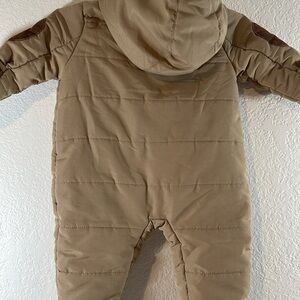 Adorable khaki colored snowsuit with corduroy elbows/cuffs and red flannel lining in hoodie.