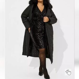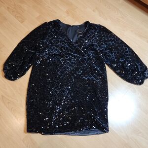 NWT Torrid Velour Sequin Surplice Black Long Sleeve Mini Dress Plus Size 26 4X