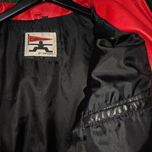 Jacket features iconic OS logos and branding. Classic black and red color scheme with white stripes. Front zip closure,inside chest pocket,ribbed collar, cuffs, and waist. Perfect for game days, alumni events, or showing school spirit. Large embroidered Buckeyes logo on back with additional logo on front. Excellent piece for any OSU fan or collector.