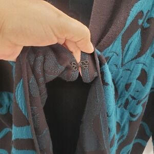 Chico's Scroll Print Sweater Cardigan Womens XL 3 Black Teal Blue Longline Tunic