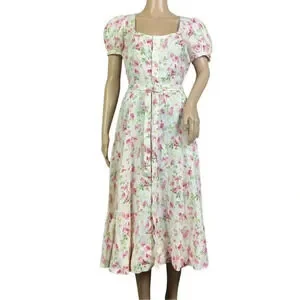 POLO Ralph Lauren Womens Linen Floral Sweet Pea Garden Party Midi Dress Size 14