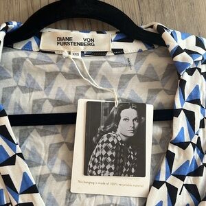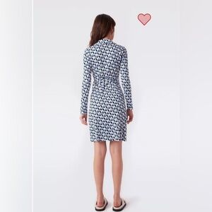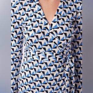 DVF New Jeanne Two Jersey Silk Wrap Dress in Akita Signature Blue Size XXS