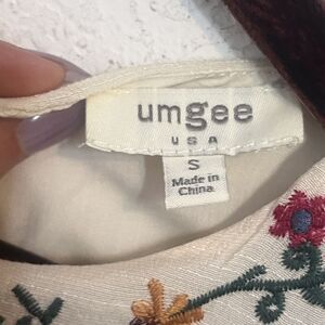 Umgee Boho Mini Dress Ivory Floral Embroidered Peasant 3/4 Bell Sleeves Size S