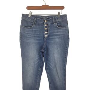 Maurices Jeans L Womens High Rise Dark Wash Raw Hem Buttonfly Skinny Denim