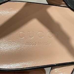 GUCCI Double G gold-toned hardware Leather mid-heel sandal Sz- 7.5 US / 37.5 .EU