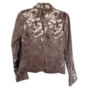 Etro Women's Wool Taupe Multi Floral Print Button Front Blazer Jacket Size 40 NWT