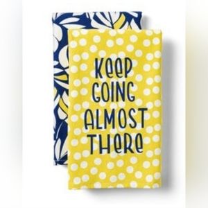 Dish Towels- Set of 2 'Keep Going Almost There' Kitchen Towels - Tabitha Brown for Target Terry Cloth Towels with positive messages 1 yellow and white polka dot terry cloth dish towel with "Keep Going Almost There" 1 blue and white leaf printed terry cloth Dimensions (Overall): 28 Inches (L), 18 Inches (W). Dopamine Kitchen, Bright Kitchen, Farmhouse Kitchen, Target Limited Edition, Tabitha Brown, Target Collections