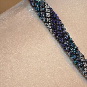 Blue Gradient Beaded Crochet Mid-Length Necklace