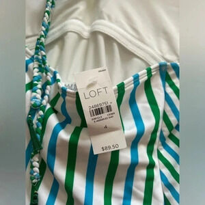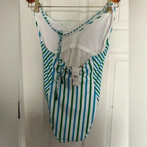 LOFT Blue Green Striped Halter One Piece Bathing Suit NWT Size 4