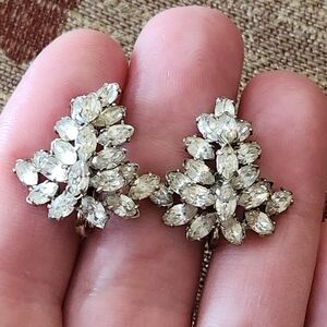 Vintage SHERMAN CLIP-ON EARRINGS Clear Rhinestones