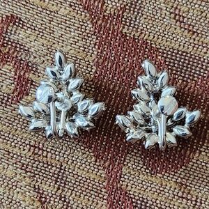 These elegant and collectible Sherman earrings date from the late 1950’s. The silver tone base is a rhodium plated metal and the shape is arched in both length and width, giving the sparkly rhinestones lots of angles and opportunities to show off and dazzle. Approximately 1 inch in length.