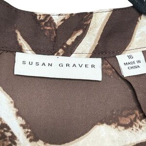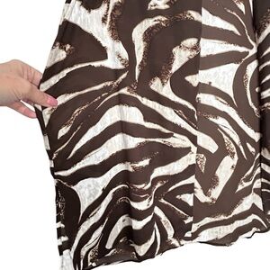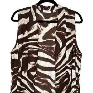 Susan Graver Brown/White Animal Print Chiffon Sleeveless Open Style Vest Sz 16