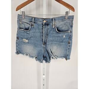 We the Free Women's Blue High Rise Button Closer Distressed Jean Short Size 31