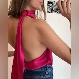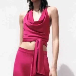 Beautiful barbiecore fuchsia pink halter top by Zara
