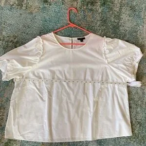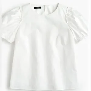 J. Crew White Puff-Sleeve Cotton Poplin Top