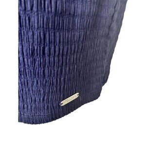 Calvin Klein Medium Navy Textured Flutter Sleeve Blouse Womens Polyester Chiffon