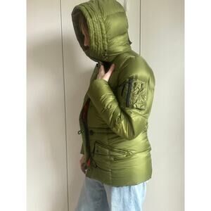 Eddie Bauer Down Puffer Coat 550 Fill Green Hooded Ski Outdoor Winter Parka SZ S