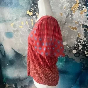 Lucky Brand | Red and Blue Patterned Women's Top