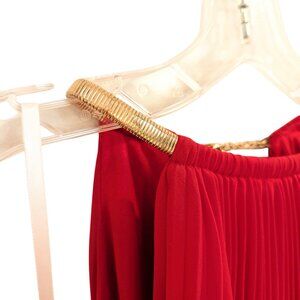 XSCAPE by Joanna Chen Chiffon Accordion Blouson Dress 14 Red Pleated Gold Collar